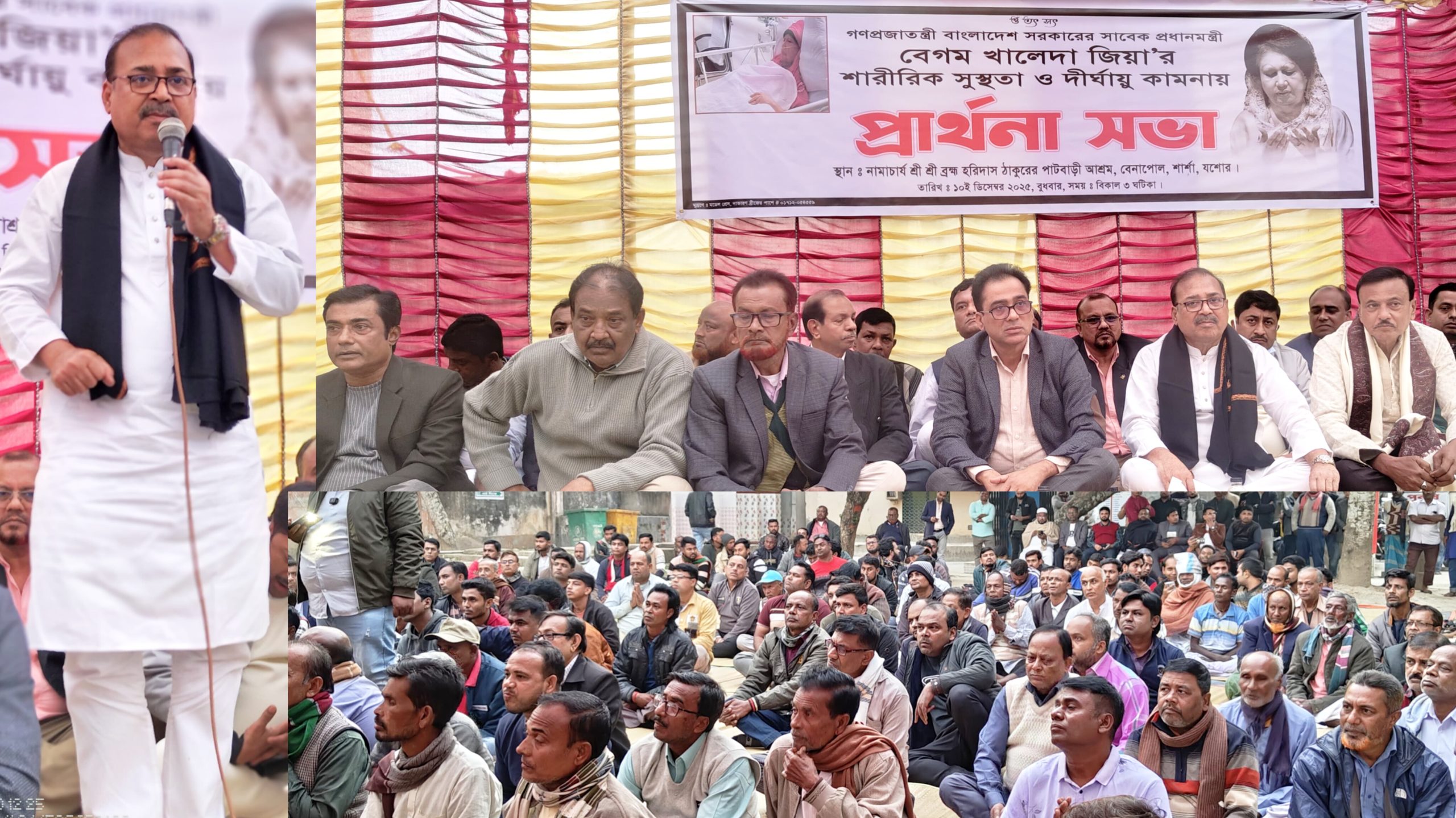 নিউজ সান ডেস্ক : তিন বারের সাবেক প্রধানমন্ত্রী,গনতন্ত্রের মা,বিএনপির চেয়ারপারসন বেগম খালেদা জিয়ার শারীরিক সুস্থতা ও দীর্ঘয়ু কামনায় বিশেষ প্রার্থনা সভা নামাচার্য শ্রী শ্রী ব্রক্ষ হরিদাস ঠাকুরের বেনাপোল পাটবাড়ী আশ্রমে অনুষ্ঠিত হয়েছে।