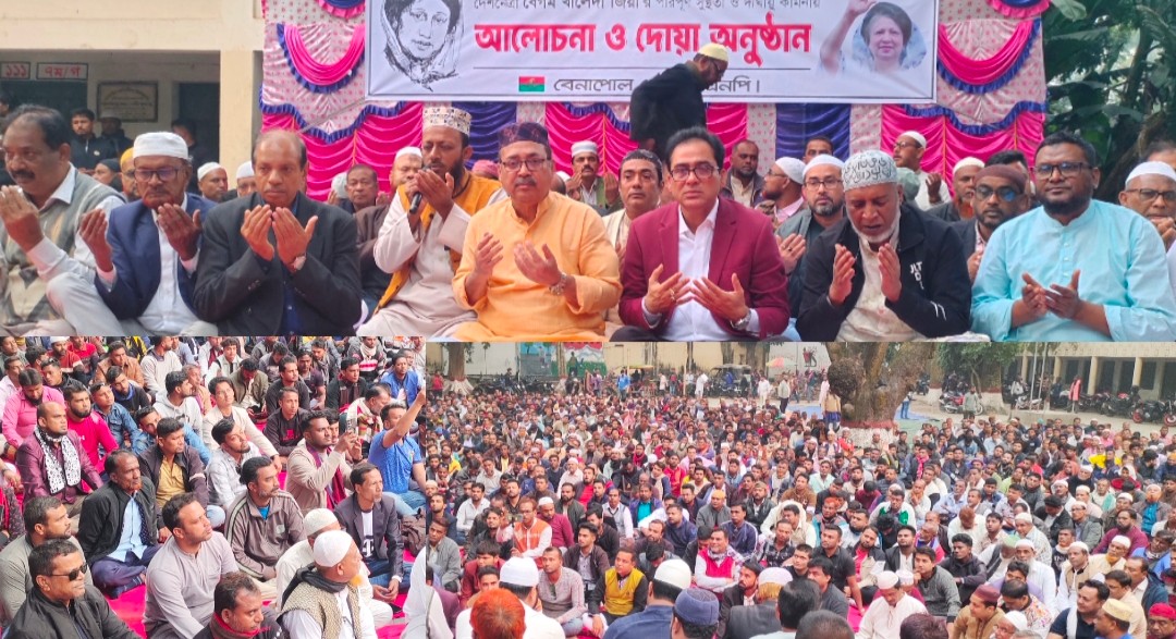 নিউজ সান ডেস্ক : বাংলাদেশ জাতীয়তাবাদী দল বিএনপির চেয়ারপার্সন ও সাবেক তিনবারের প্রধানমন্ত্রী বেগম খালেদা জিয়ার রোগমুক্তি ও সুস্থতা কামানায় বেনাপোল পৌর বিএনপির আয়োজনে আলোচনা সভা ও দোয়া মাহফিল অনুষ্ঠিত হয়েছে।