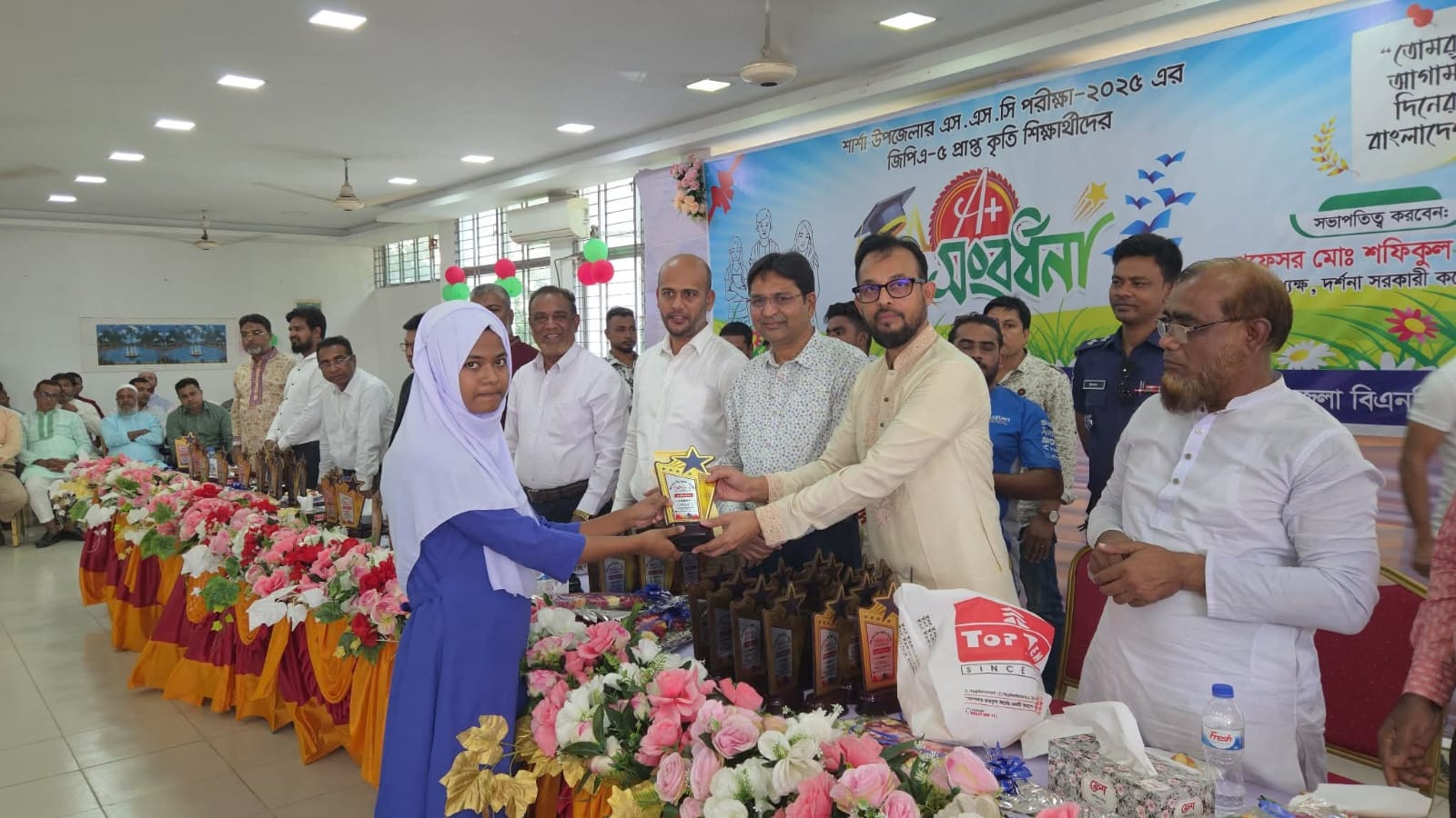 এ অনুষ্ঠানে সভাপতিত্ব করেন দর্শনা সরকারি কলেজের অধ্যক্ষ প্রফেসর মো. শফিকুল ইসলাম। এতে উপজেলার ৩৮টি মাধ্যমিক বিদ্যালয়, গার্লস স্কুল ও ৩৬টি মাদ্রাসার জিপিএ-৫ প্রাপ্ত ১৮৪ জন কৃতী শিক্ষার্থীকে সম্মাননা ক্রেস্ট, ফুলেল শুভেচ্ছা ও শিক্ষাবৃত্তি প্রদান করা হয়।