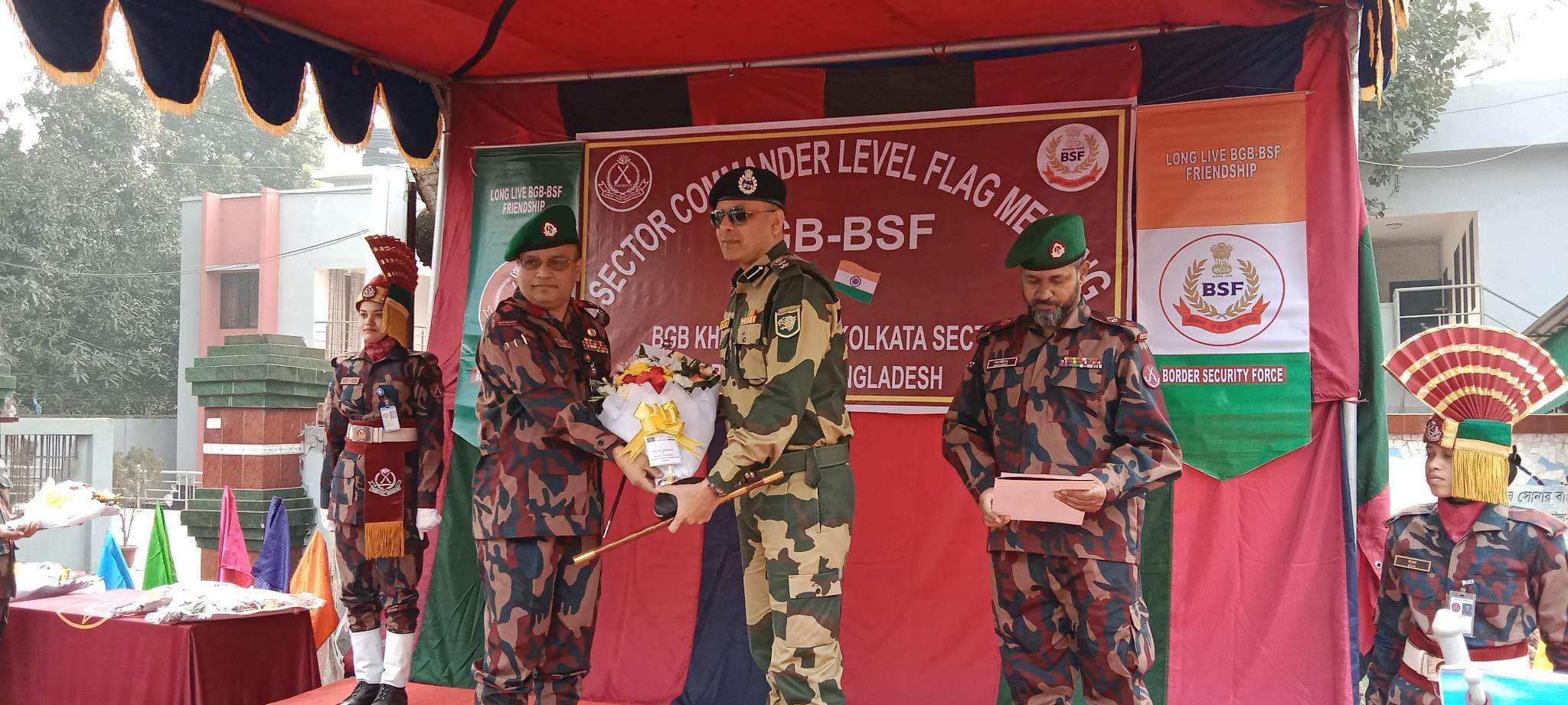 এর আগে সকাল ১০ টার সময় বেনাপোল আইসিপি ক্যাম্প সংলগ্ন নোম্যান্সল্যান্ডে উভয় দেশের কর্মকর্তাদের উভয়ে ফুলের শুভেচ্ছা জানান। এরপর বেনাপোল কোম্পানি সদরে বিএসএফ প্রতিনিধিদের গার্ড অব অর্নার করেন বিজিবি সদস্যরা।