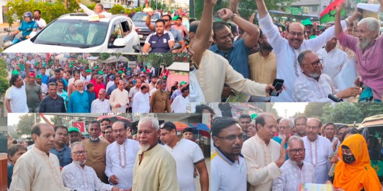 বেনাপোল স্থলবন্দর হ্যান্ডেলিং শ্রমিক ইউনিয়ন ৮৯১ ও ৯২৫ এর উদ্যোগে নুরুজ্জামান লিটন এর ধানের শীষের বিশাল প্রচার মিছিল অনুষ্ঠিত