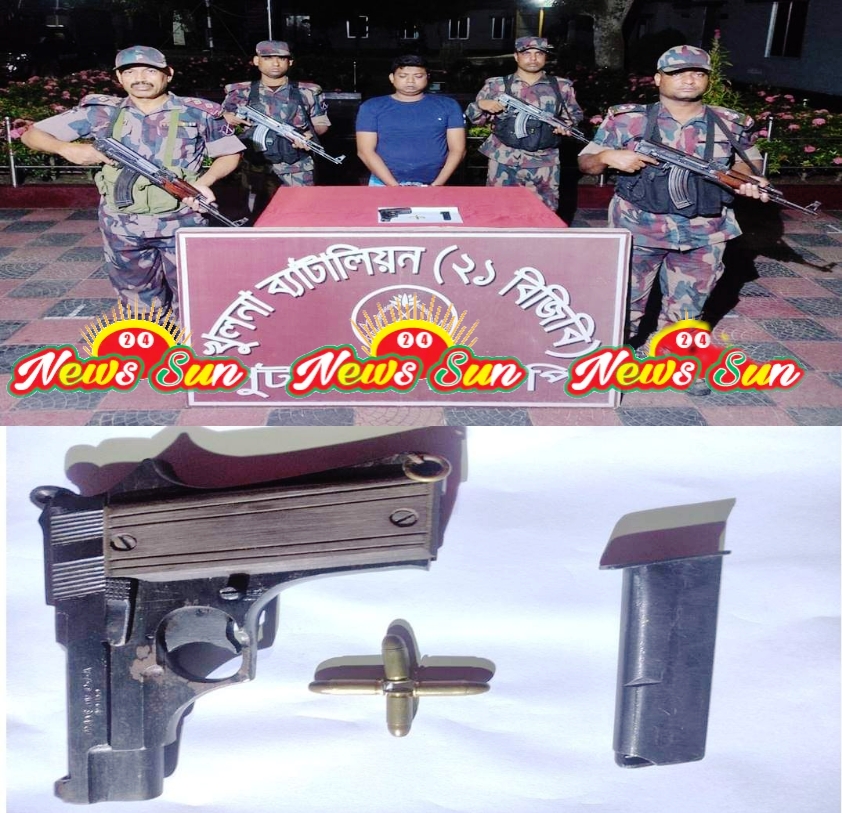 খুলনা ব্যাটালিয়ন (২১ বিজিবি) এর অধিনায়ক লেঃ কর্নেল মোহাম্মদ তানভীর রহমান, পিএসসি, জানান, অস্ত্র বেচাকেনার গোপন খবরে, পুটখালী বিওপি’র ১ টি চৌকষ টহল দল পুটখালী গ্রামের কামারবাড়ী মোড় এলাকায় অভিযান চালায়। এসময় সন্দেহভাজন ওই বিজিবি সদস্যদের দেখে দৌঁড়ে পালানোর চেষ্টা করে। পরে, বিজিবির টহল দল তাকে ধাওয়া করে আটক করে। এসময় তাকে তল্লাশী করে তার কোমরের লুঙ্গির পিছন হতে ১ টি নাইন এমএম পিস্তল (ইউএসএ), ১টি ম্যাগাজিন ও ৪ রাউন্ড গুলি উদ্ধার করা হয়।