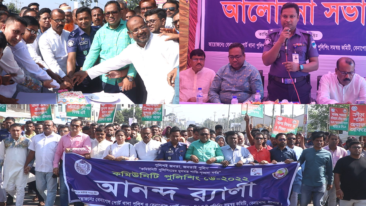 (২৯ শে অক্টোবর) শনিবার সকাল ১০ টার সময় বেনাপোল পোর্ট থানার অফিসার ইনচার্জ কামাল হোসেন ভূঁইয়ার  সভাপতিত্বে  অনুষ্ঠানের শুরুতে কেক কেটে বেলুন ও পায়রা উড়িয়ে ঢাক ঢোল পিটিয়ে আনন্দ রেলি বের করে,উক্ত রেলিটি বেনাপোল বন্দর ঘুরে পুনরায় থানার সামনে এসে শেষ হয়। পরে থানার ভিতরে আলোচনা সভা শুরু হয়।