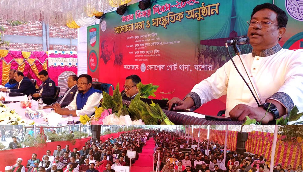 শনিবার বিকেলে বেনাপোল পোর্ট থানার আয়োজনে থানার সামনে মহাসড়কের পাশে অনুষ্ঠিত মহান বিজয় দিবস-২০২২ উদযাপন মঞ্চে প্রধান অতিথি হিসেবে বক্তব্য প্রদাণকালে কথাগুলি বলেন তিনি। বেনাপোল পোর্ট থানার অফিসার ইনচার্জ (ওসি) কামাল হোসেন ভুঁইয়ার সভাপতিত্বে অনুষ্ঠিত আলোচনা সভা ও সাংস্কৃতিক অনুষ্ঠানে তিনি আরো বলেছেন, আওয়ামীলীগের সভাপতি ও বারবার নির্বাচিত বাংলাদেশের প্রধানমন্ত্রী নিজের নির্বাচন নিয়ে ভাবেননা। তিনি ভাবেন, এদেশের জনগণের কথা, বাঙালি জাতির ভবিষ্যৎ প্রজম্মের উন্নয়নের কথা। সর্ব্বপরি ভবিষ্যৎ প্রজন্মকে উন্নত দেশ উপহার দেওয়ার কথা। যার প্রত্যেকটি চিন্তা-চেতনা বাস্তবে রুপ নিয়ে বাংলাদেশকে আলোকিত করেছে। তিনি ২০৪১ সালের মধ্যে স্মার্ট বাংলাদেশের কথা বলেছেন। যা বাস্তবায়িত হলে বাংলাদেশের আলো ছড়িয়ে পড়বে বিশ্বজুড়ে