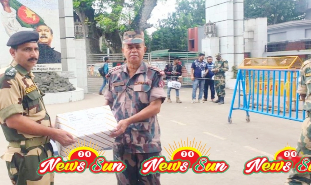 শাহাবুদ্দিন আহমেদ,বেনাপোলঃ যশোরের বেনাপোল চেকপোস্টে ভারতীয় সীমান্ত রক্ষী বাহিনী বিএসএফ কে দুর্গাপূজা উপলক্ষে সনাতন ধর্মাবলম্বীদের মিষ্টি উপহার দিয়ে শুভেচ্ছা জানিয়েছেন বর্ডার গার্ড (বাংলাদেশ) বিজিবি সদস্যরা।