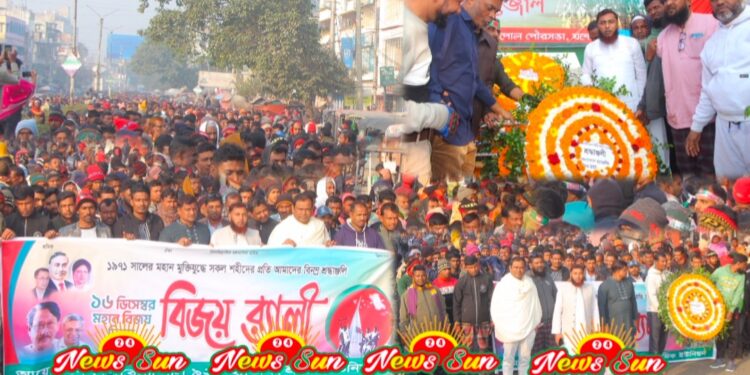 সোমবার(১৬ ই ডিসেম্বর) প্রথম প্রহরে বেনাপোল ৯২৫ হ্যান্ডলিং শ্রমিক ইউনিয়নের সাধারণ সম্পাদক ও উলাশী ইউনিয়ন বিএনপির যুগ্ম সাধারণ সম্পাদক মোঃ শহীদ আলীর নেতৃত্বে একটি র্যালী নিয়ে কাগজপুর মুক্তিযোদ্ধা স্মৃতিস্তম্ভে পুষ্পস্তবক অর্পণ করেন।