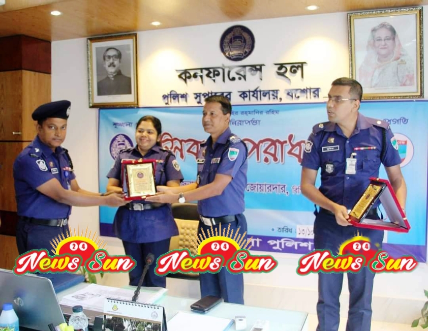 বৃহস্পতিবার(১৩ অক্টোবর) যশোর জেলা পুলিশের মাসিক কল্যাণ সভায় পুলিশ সুপার প্রলয় কুমার জোয়ারদার বিপিএম (বার) পিপিএম এই সন্মাননা সনদ প্রদান করেন।