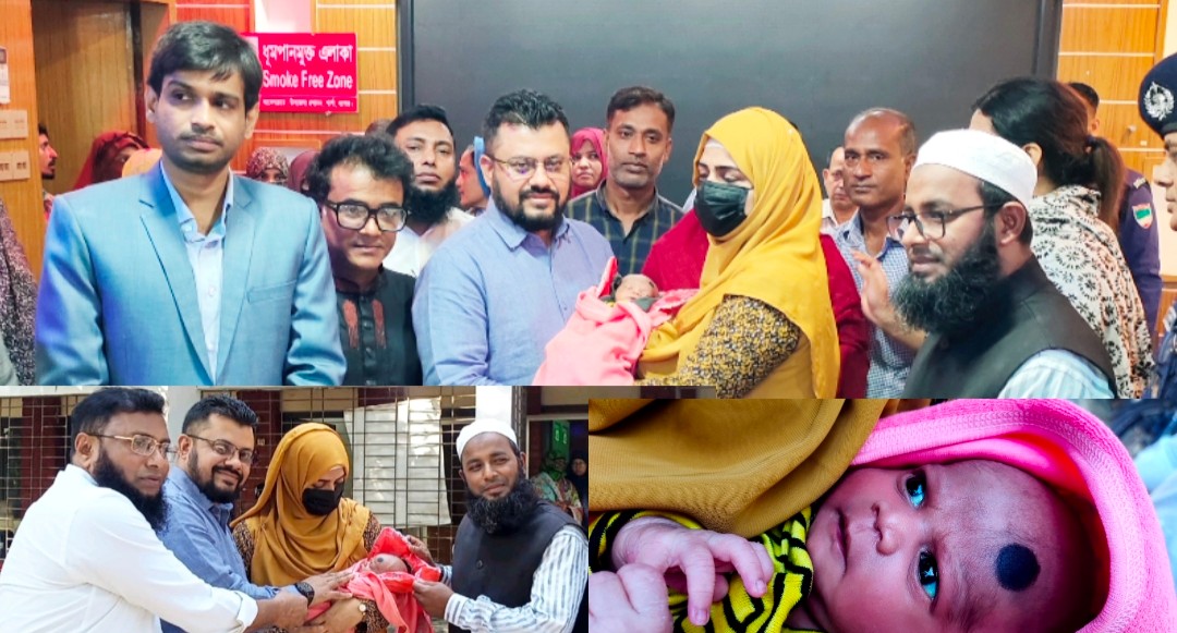 শার্শায় উদ্ধারকৃত নব জাতকের দত্তক নিল ঢাকা উত্তরা সিটির নিঃসন্তান সানাউর ও সুমাইয়া