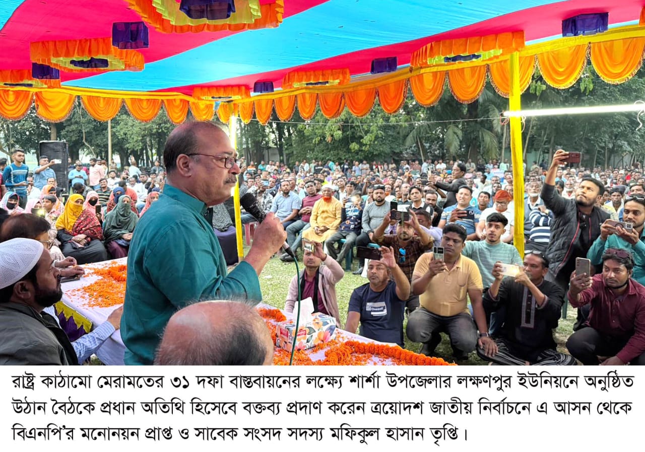 শার্শায় ভোটারদের দ্বারে দ্বারে বিএনপির প্রার্থী মফিকুল হাসান তৃপ্তি, রাষ্ট্র কাঠামো মেরামতের ৩১ দফা বাস্তবায়নের অঙ্গীকার