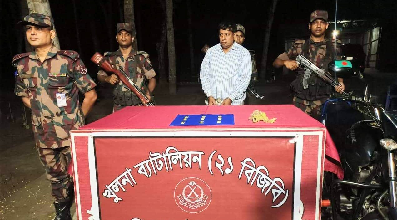 নিউজ সান ডেস্কঃ যশোরের শার্শার গোগা গাজীপাড়া সীমান্ত এলাকা থেকে ১ কেজি ৫১ গ্রাম ওজনের ৯ পিচ স্বর্ণের বার সহ কওসার আলী নামে এক স্বর্ণ পাচারকারীকে আটক করেছে বর্ডার গার্ড বাংলাদেশ বিজিবি জোয়ানরা।