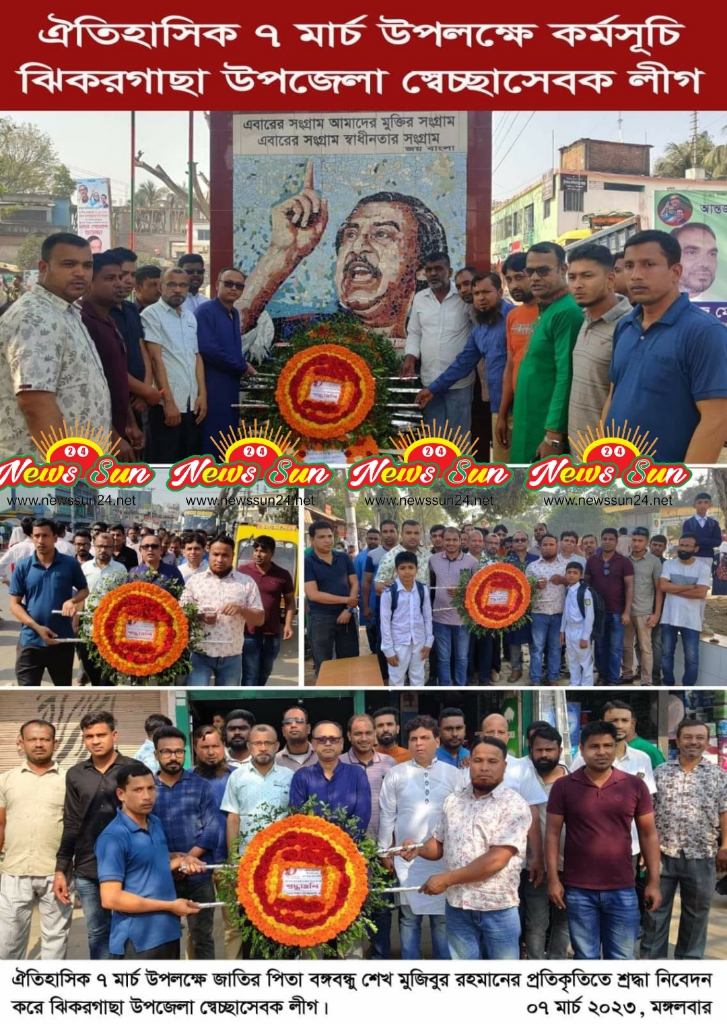 ৭ই মার্চ উপলক্ষে ঝিকরগাছায় বঙ্গবন্ধুর প্রতিকৃতিতে স্বেচ্ছাসেবক লীগের শ্রদ্ধা
