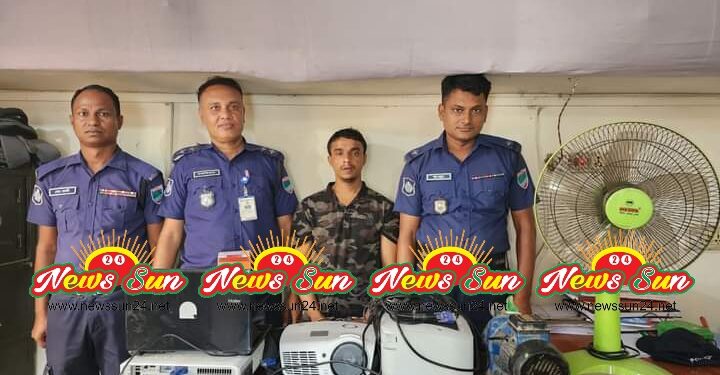 বেনাপোল পোর্ট থানা পুলিশের অভিযানে প্রাথমিক বিদ্যালয়ের চুরি যাওয়া মালামাল সহ চোর আটক